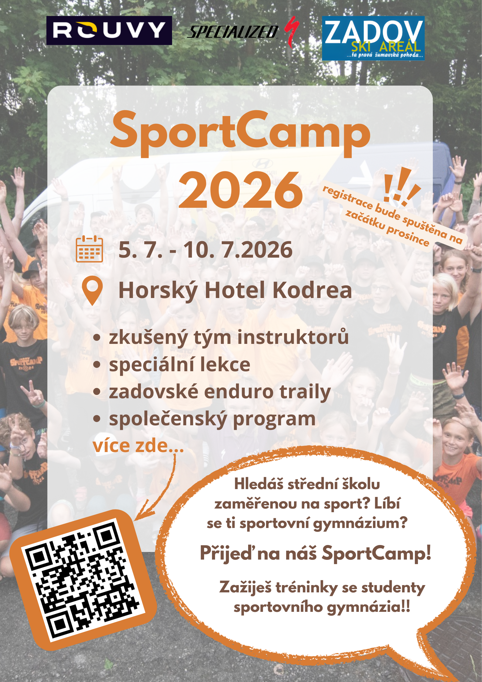 Uvažuješ o studiu na sportovním gymnáziu? Chceš si vyzkoušet, jaké to je trénovat s týmem Rouvy Cycling teamem? Přijeď za námi na Sportcamp.